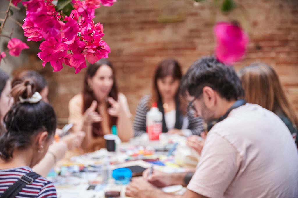 Cada encuentro se cierra con una puesta en común. Un momento para compartir las creaciones y las reflexiones surgidas durante el proceso, generando un diálogo grupal que enriquece la experiencia. Lo individual se transforma al ponerse en relación con los otros.